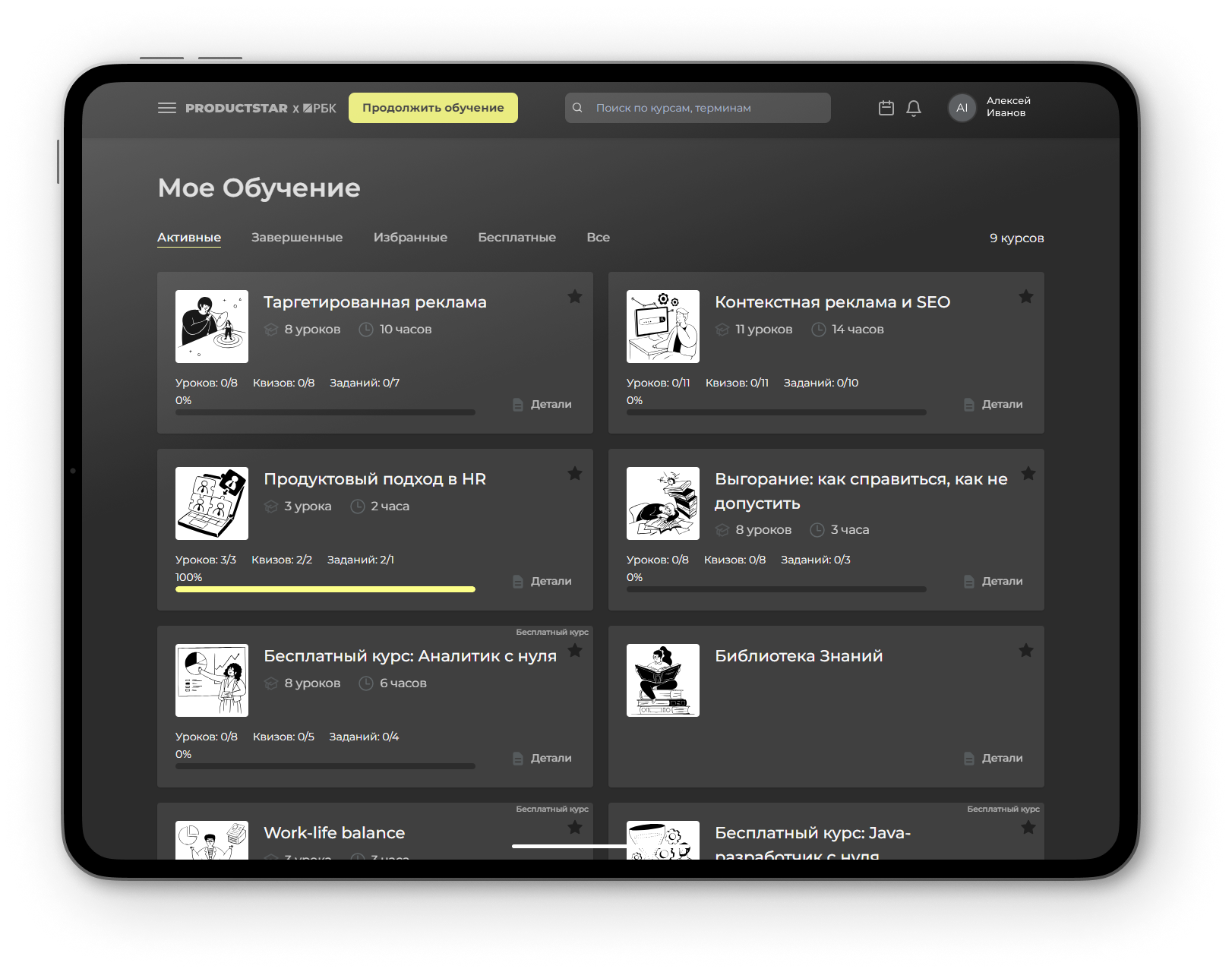 ProductStar, позволяют организовать эффективный процесс обучения в формате онлайн. Благодаря такой платформе вы сможете загружать разного рода курсы, отслеживать успеваемость персонала, проводить тесты, своевременно выявлять проблемы и вносить изменения в образовательную программу.